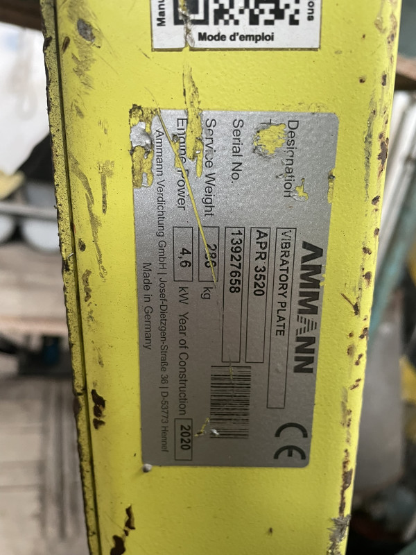 Vibrační deska Ammann APR 3520, hmotnost 280kg, rok výroby 2020, elektrické startování, po servisu, málo používaná, cena 99tis bez DPH