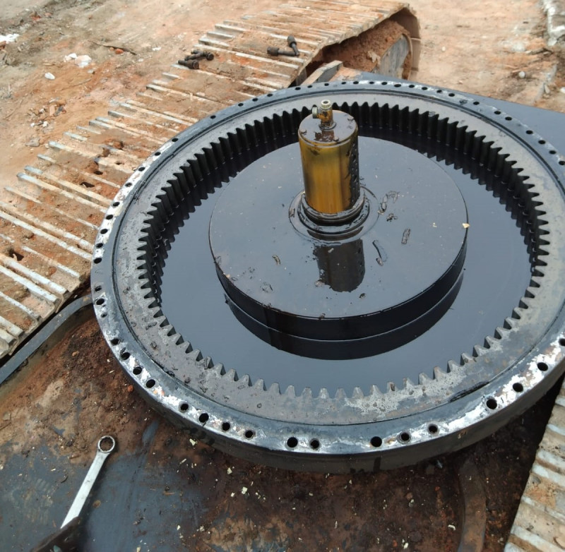 Vzhledem k nákladné přepravě bagru, jsme se rozhodli vyměnit ložistko 45 tunového bagru přímo na stavbě. To vše jsme zvládli během 3 dnů a to i za mrazivého počasí.